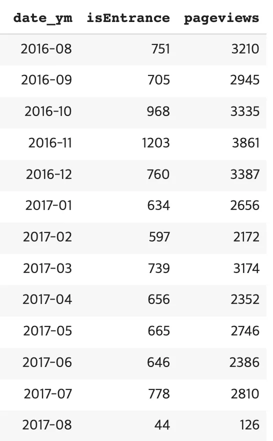 해당 데이터셋은 2016년 8월 1일 ~ 2017년 8월 1일까지 총 1년간의 GA 세션 데이터를 담고 있기 때문에 데이터양이 매우 방대하다. (약 90만 행..)
