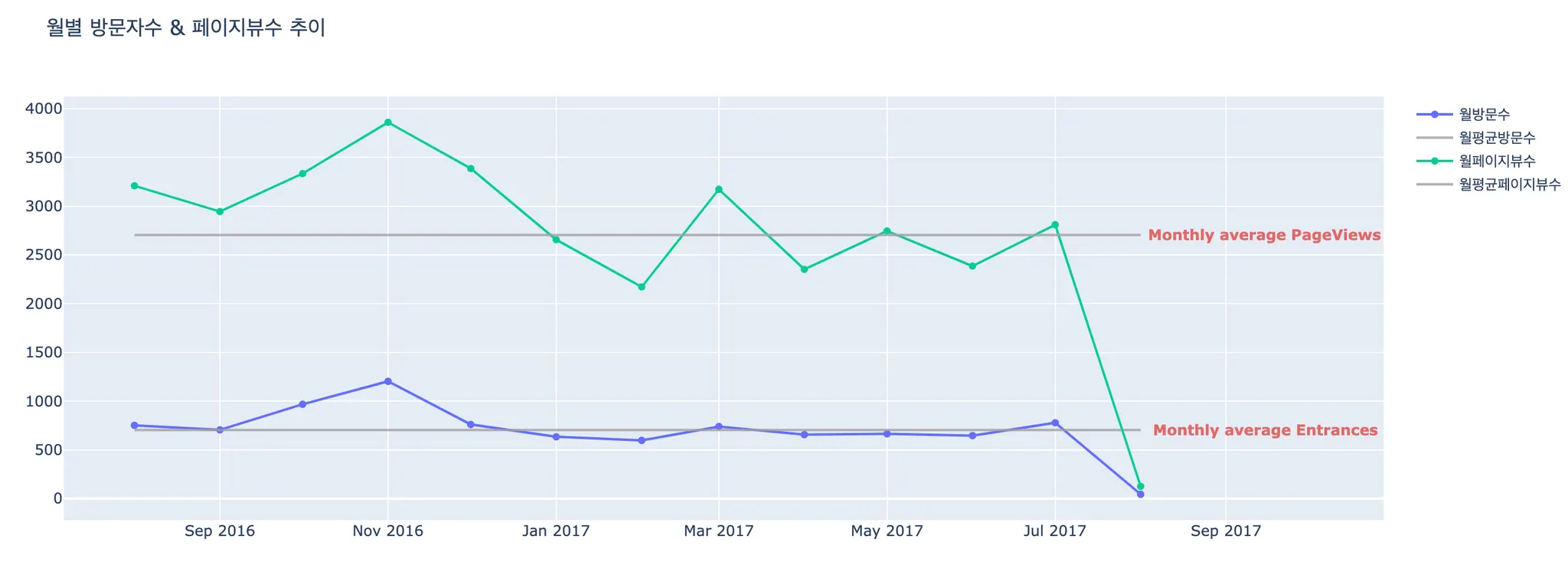 두 지표는 사이트의 성장 추세와 사이트의 매력도를 보여주기 때문에 꾸준히 모니터링하여 문제가 있거나 특이사항이 있다면 추가 분석을 진행해야 한다.