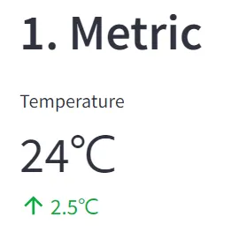 st.metric(label='Temperature', value='24℃', delta='2.5℃')