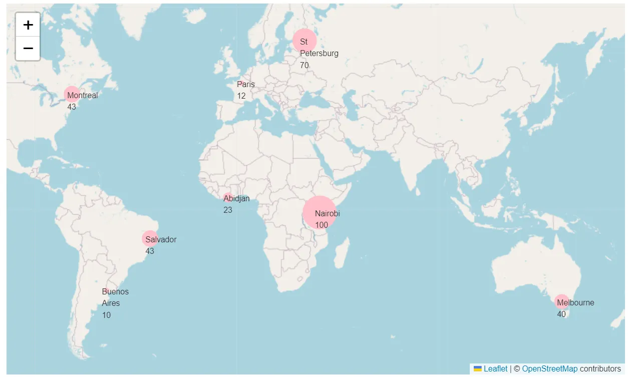 'name': ['Buenos Aires', 'Paris', 'Melbourne', 'St Petersburg', 'Abidjan', 'Montreal', 'Nairobi', 'Salvador'],