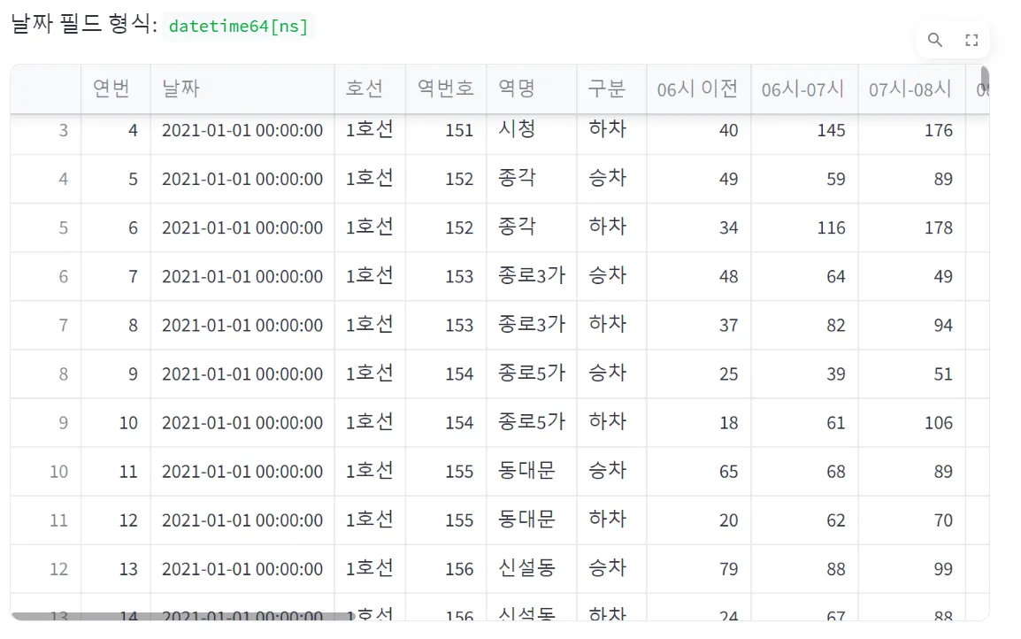 st.caption('dataframe, write- 10개 행 기준 스크롤, 열 크기조정, 열 정렬, 테이블 확대')