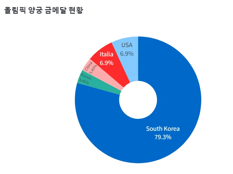 fig = px.pie(medal, names='nation', values='gold', title='올림픽 양궁 금메달 현황', hole=.3)