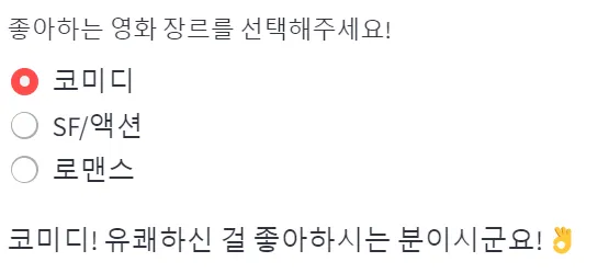 genre = st.radio('좋아하는 영화 장르를 선택해주세요!',