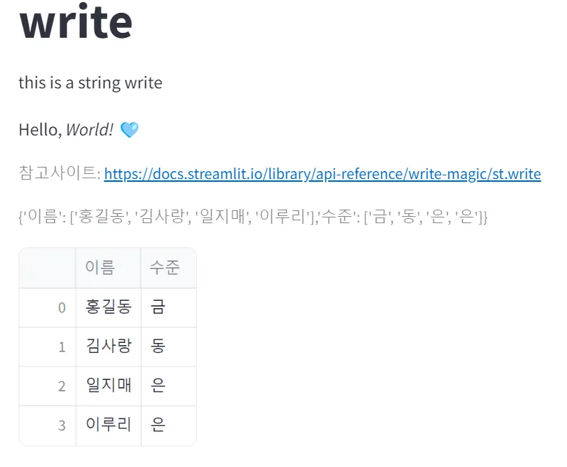 st.caption('참고사이트: https://docs.streamlit.io/library/api-reference/write-magic/st.write')