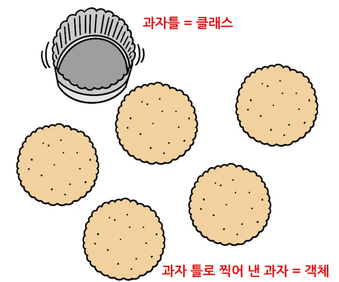 다음의 그림이 클래스와 객체의 역할을 잘 설명해준다.