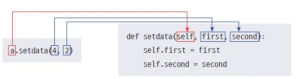 그 이유는 setdata 메서드의 첫 번째 매개변수 self에는 setdata 메서드를 호출한 객체 a가 자동으로 전달되기 때문이다.
