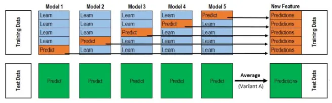 학습 데이터에서 cross-validation 을 k번 진행하면 k개의 prediction값이 출력된다.