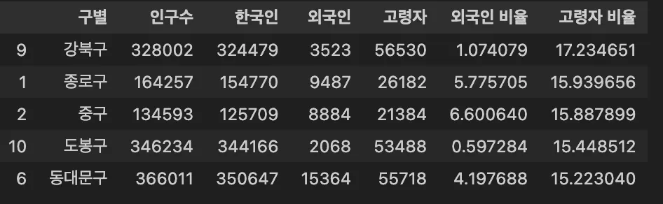 pop_seoul.columns[4] : "고령자",