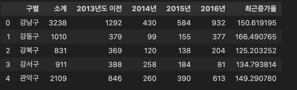 data_result.drop(['2013년도 이전','2014년','2015년','2016년'], axis=1, inplace=True)