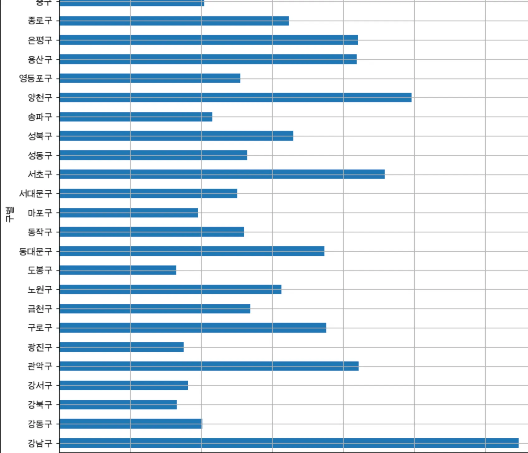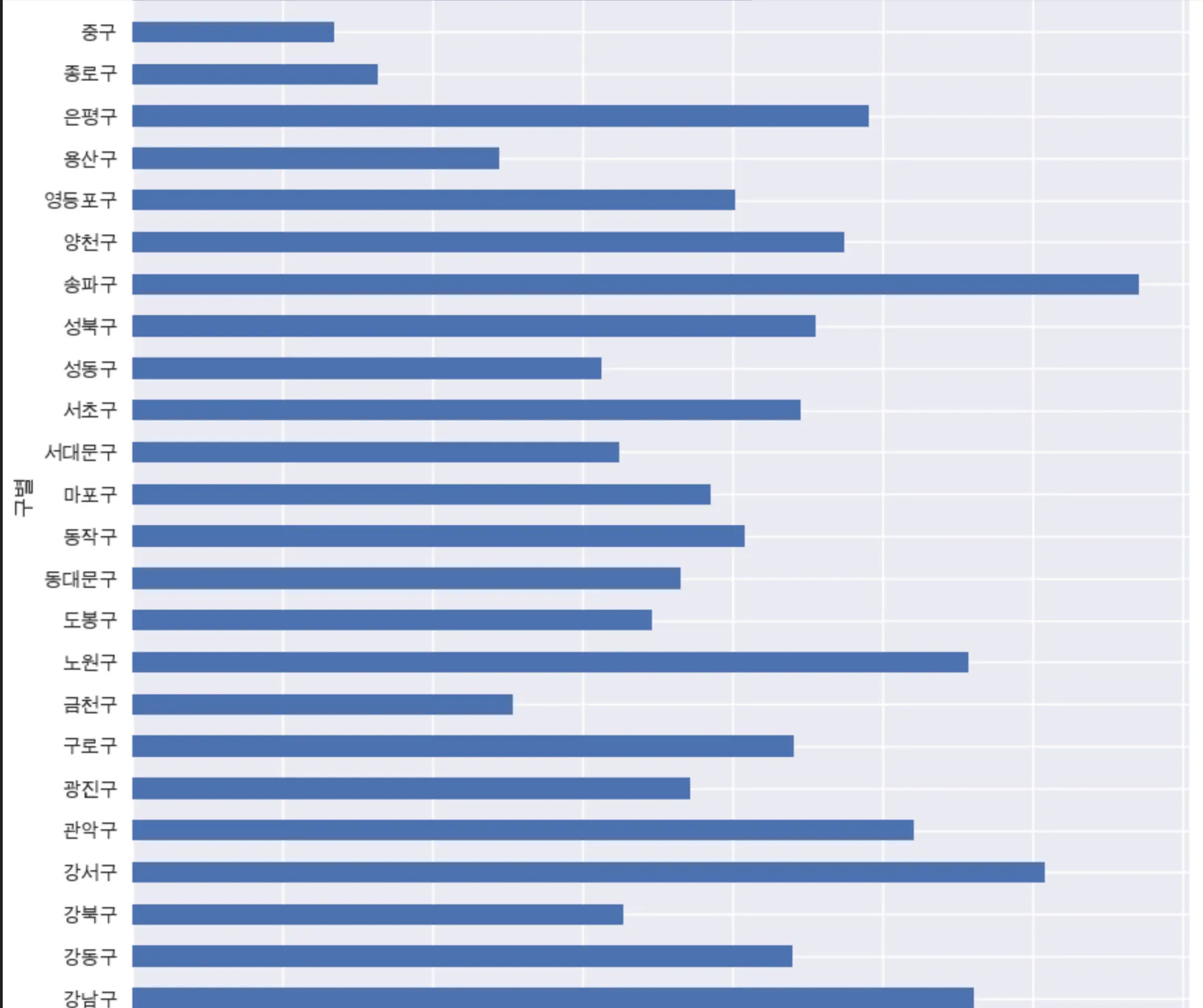 인구수를 구별로 막대 그래프 시각화하기