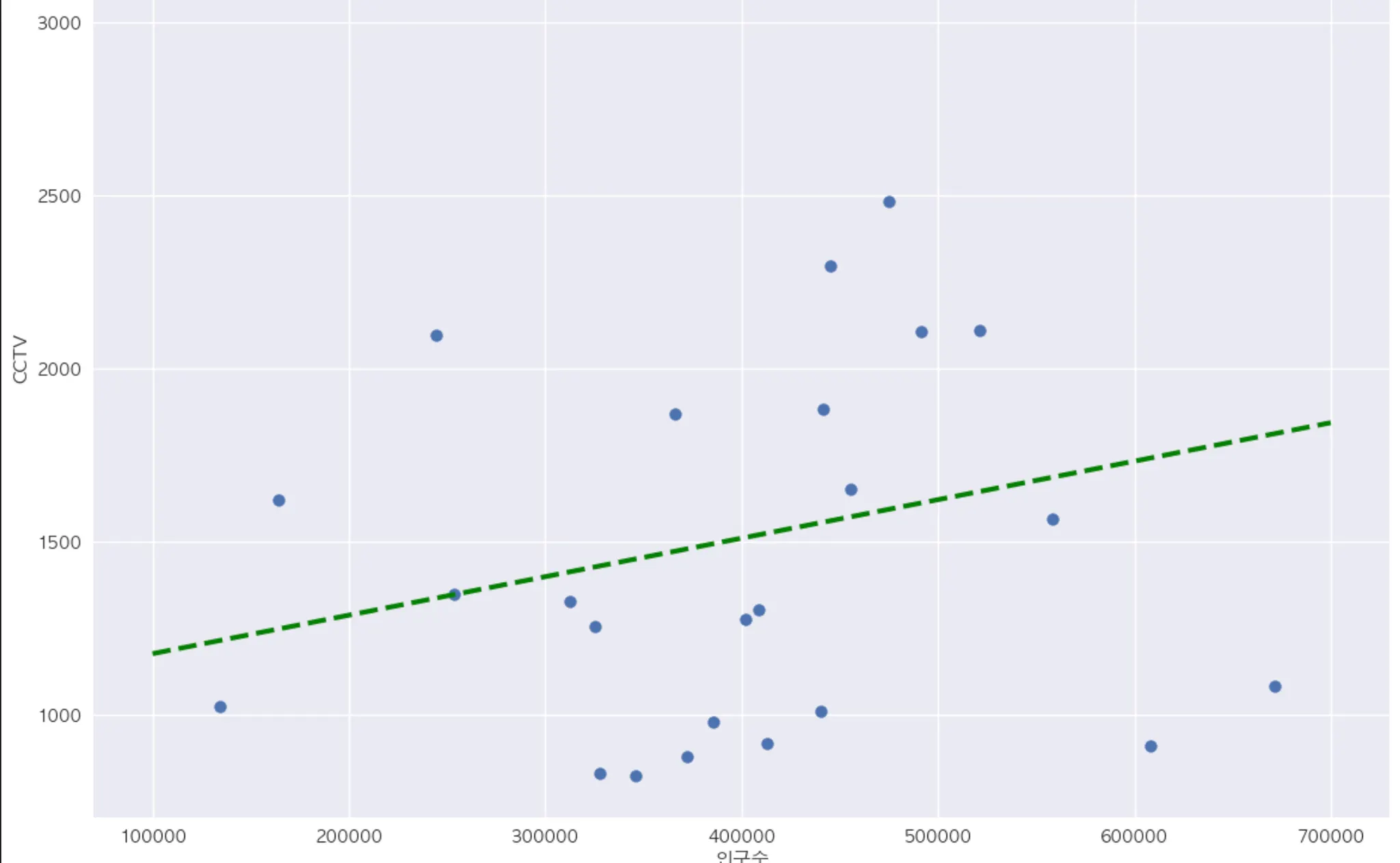 인구수와 CCTV 보유대수 간의 산점도 그리기