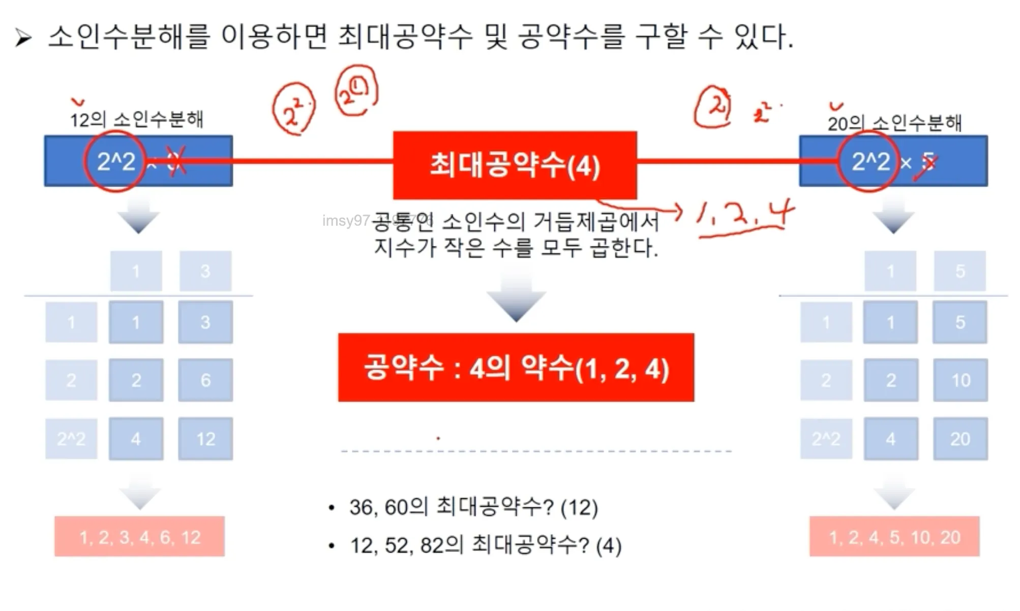 소인수분해를 이용하면 최대공약수 및 공약수를 구할 수 있다.