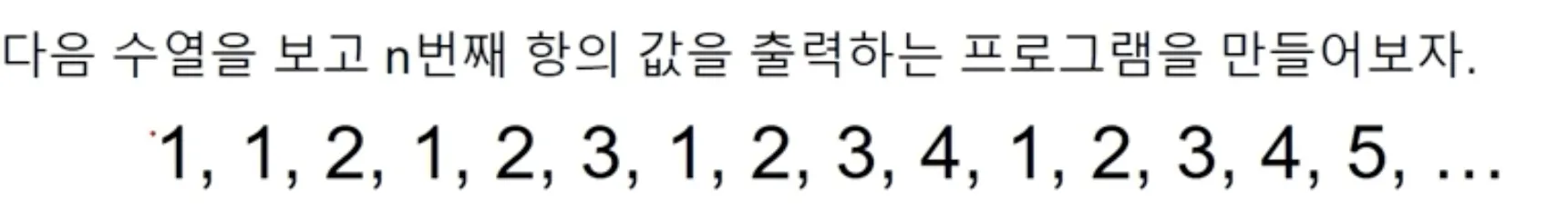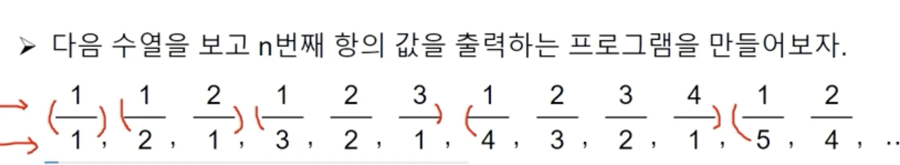 n = 1; nCnt = 1; searchN = 0 # nCnt 는 n항의 숫자를 담는 변수, searchN은 해당 항의 값을 담는 변수