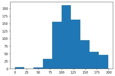 plt.hist(diabetes_data['Glucose'],bins=10)