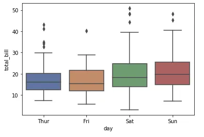 sns.boxplot(x='day', y='total_bill', data=tips)