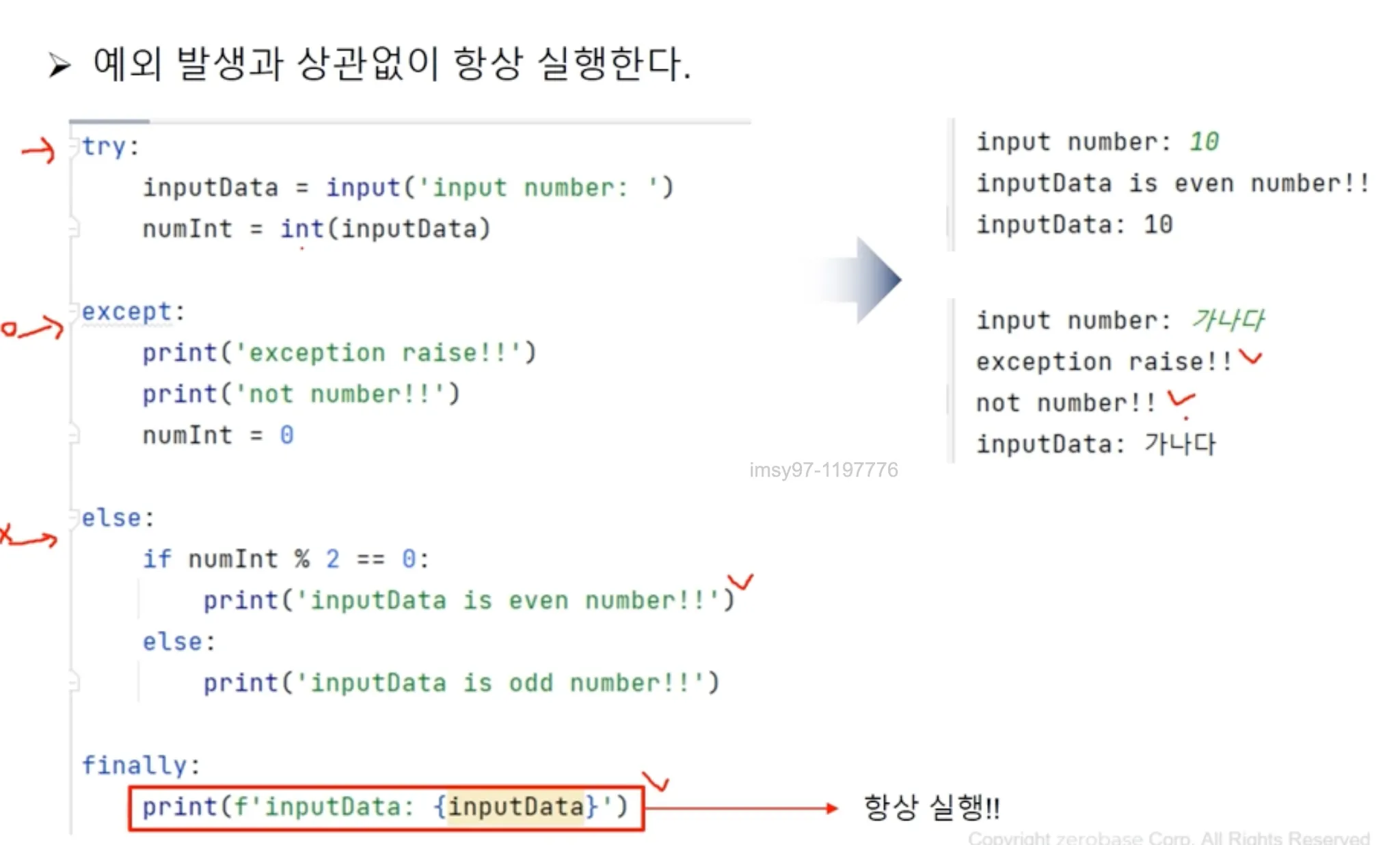 예외 발생과 상관없이 항상 실행하는 구문이다.