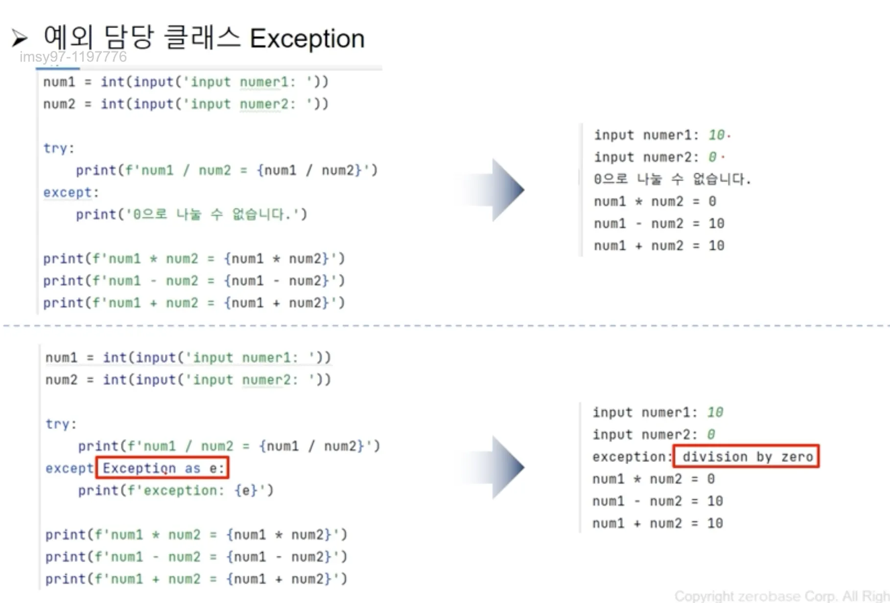 예외가 발생하는 구문에 해당하는 대표 클래스들이다. 출처 : ZeroBase Corp. 데이터취업패키지