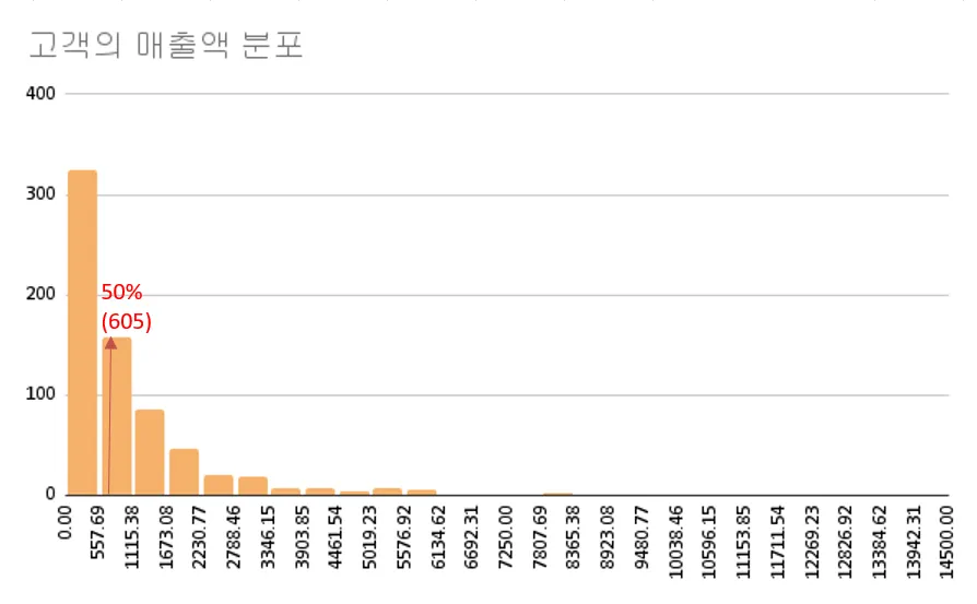 이커머스 시장에서는 고객의 구매력(Monetary) 보다도 사용률(Frequency)을 더욱 중요하게 판단하는 경우가 많습니다.