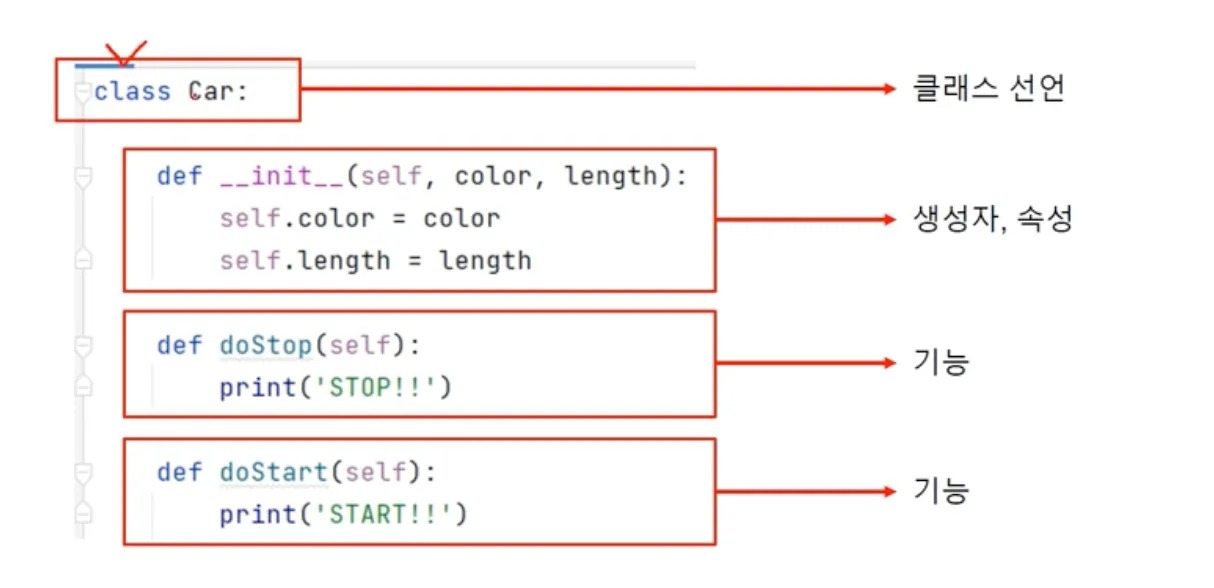 클래스는 class 키워드와 속성(변수), 그리고 기능(함수)를 이용해서 만든다.